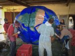 The building of Gaïa itself took less than 3 weeks. From the start, James Frost joined the team and became Txema’s first acolyte. Lisa, Clara, Scott and Kaddi, Jim and Elmar were helping in a thousand ways and especially to draw a beautiful map of the earth on the ball. The children would come to visit from time to time until we brought the ball to the school. We had no holds and found a great help from Citirocksthrough its founder Robert Breyer and Metoliuswho agreed to contribute as a sponsor. Gecko Grips also agreed to make a special price for us and I contacted Mike Behr who was willing to help by giving holds. Everyone wanted to help the success of Gaïa.